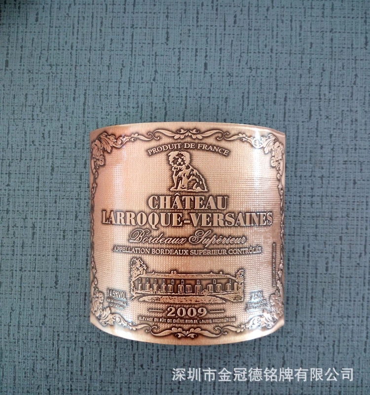 深圳定制高檔紅酒白酒洋酒葡萄酒金屬浮雕沖壓標貼瓶標